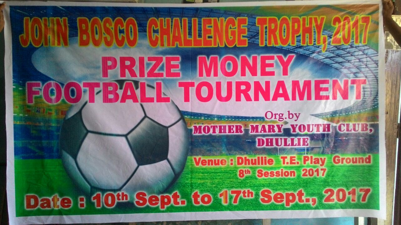 পাভৈঃ বিশ্বনাথৰ ধুলিত ১০ ছেপ্তেম্বৰৰ পৰা অনুষ্ঠিত হ’ব জনবস্ক চেলেঞ্জ ট্ৰফী-২০১৭৷ মাদাৰ মেৰী য়ুথ ক্লাৱৰ উদ্যোগত আৰু স্থানীয় ৰাইজৰ সহযোগত ধুলি চাহ বাগিচা খেল পথাৰত অনুষ্ঠিত হ’বলগীয়া ফুটবল প্ৰতিযোগিতা নিয়াৰিকৈ পৰিচালনা কৰিবলৈ জন ৰবিনচন এক্কাক সভাপতি আৰু জন আৰ্তীশ টপ্পক সম্পাদক হিচাপে লৈ পৰিচালনা সমিতি গঠন কৰা হৈছে।
