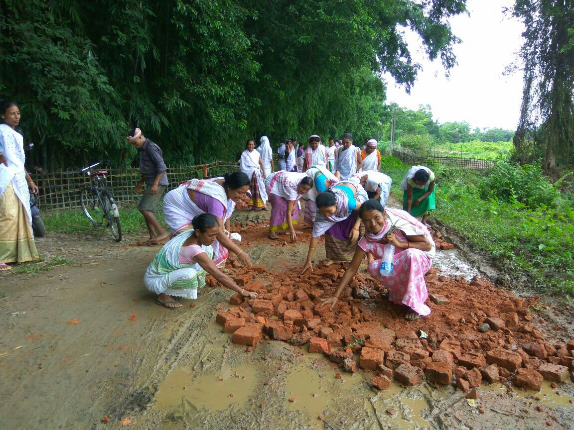 নাহৰকটীয়াঃ দহো বন কাটি কৰি ঘৰৰ পৰা ওলাই আহিল মহিলা৷ অতিষ্ঠ মহিলাই শ্ৰমদানেৰে কৰিলে পথৰ মেৰামতি৷ চৰাকৰক ফেইল আখ্যা দি গাঠিৰ ধন ভাঙি শ্ৰমদানেৰে মেৰামতি কৰিলে পথ৷ নাহৰকটীয়া সমষ্টিৰ মেৰবিল গাঁও পঞ্চায়তৰ অৰ্ন্তগত শলগুৰি অালিৰ পৰা দিহিং নদীৰ সমীপৰ্বত্তী গাঁও সমূহলৈ আহ-যাহ কৰা একমাত্ৰ পথটো মেৰামতিৰ অবাৱত কদৰ্যময় হৈ পৰে৷
