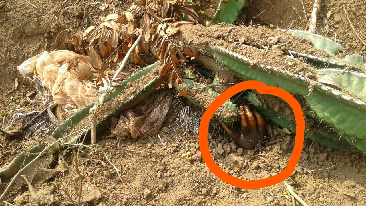 পাহাৰত পুতি থোৱা অৱস্থাত বস্তাৰ ভিতৰৰ পৰা এখন হাত ওলাই থকা প্ৰত্যক্ষ কৰি স্থানীয় লোকে মায়ং আৰক্ষীক খবৰ দিয়ে৷
