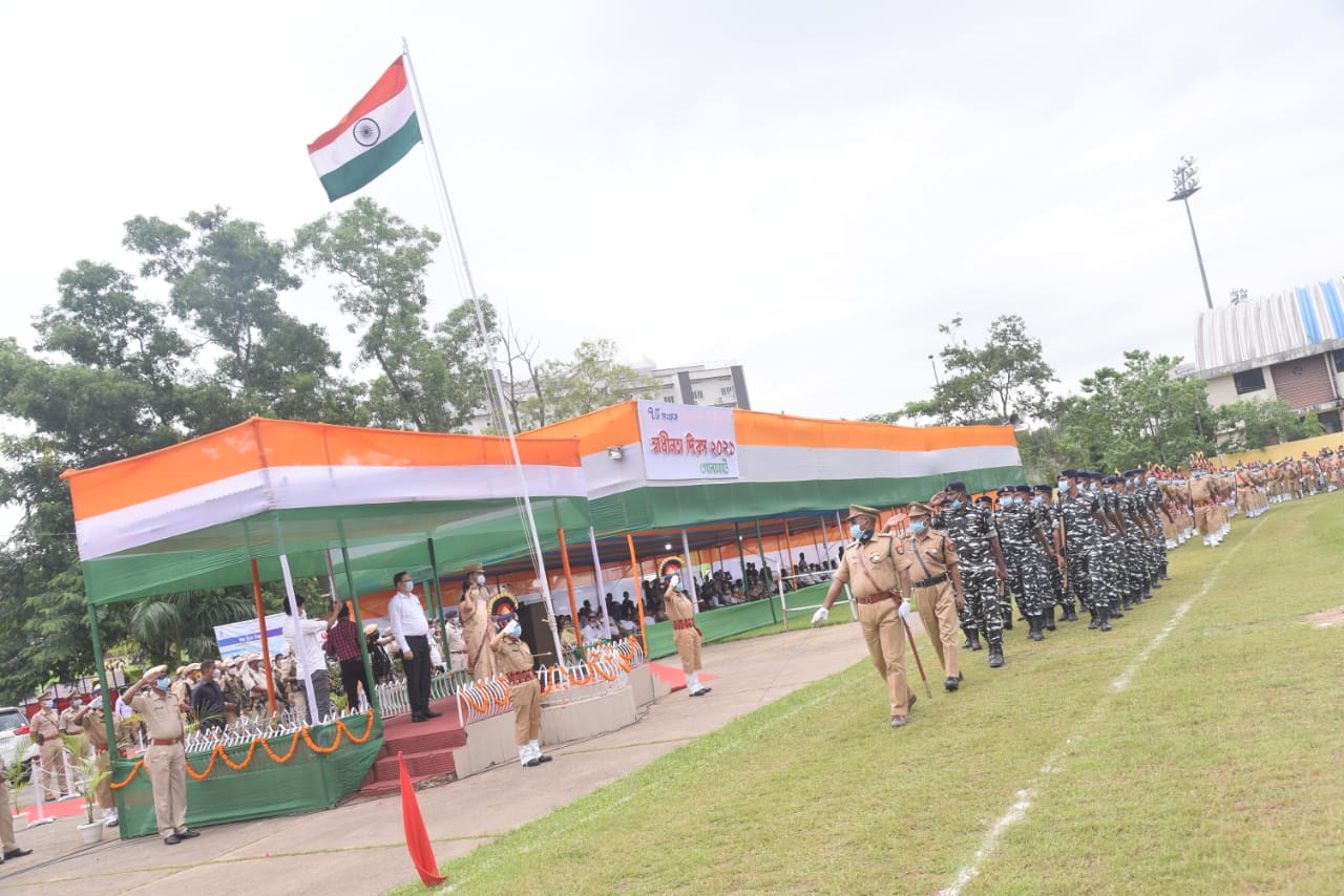 গোলাঘাট, ১৫ আগষ্ট : সমগ্ৰ দেশৰ লগতে আজি গোলাঘাট জিলাতো ৭৫ সংখ্যক স্বাধীনতা দিৱস উদযাপন কৰা হয় । ক’ভিডসৃষ্ট পৰিস্থিতিৰ প্ৰতি লক্ষ্য ৰাখি জিলা প্ৰশাসনৰ উদ্যোগত গোলাঘাটৰ সমন্বয় পথাৰত সীমিত কাৰ্যসূচীৰ মাজেৰে স্বাধীনতা দিৱস পালন কৰা হয় । দিৱসৰ কাৰ্যসূচীত অসম চৰকাৰৰ বিত্ত আৰু সমাজ কল্যান মন্ত্ৰী শ্ৰীযুতা অজন্তা নেওগে মুখ্য অতিথি হিচাপে অংশগ্ৰহণ কৰি আৰক্ষী আৰু অৰ্ধ-সামৰিক বাহিনীৰ অভিবাদন গ্ৰহণ কৰাৰ লগতে জিলাবাসীক উদ্দেশ্যি ভাষণ দিয়ে । তেওঁ শ্বহীদ আৰু মুক্তিযুঁজাৰুৰ পৰিয়াল, ক’ভিড যোদ্ধা, আদৰ্শ কৃষক আৰু গাঁওৰক্ষী বাহিনীক সম্বৰ্ধনা জনোৱাৰ লগতে ছাত্ৰ-ছাত্ৰীৰ মাজত অনুষ্ঠিত বিভিন্ন প্ৰতিযোগিতাত স্থান লাভ কৰাসকলক পুৰস্কাৰ প্ৰদান কৰে ।