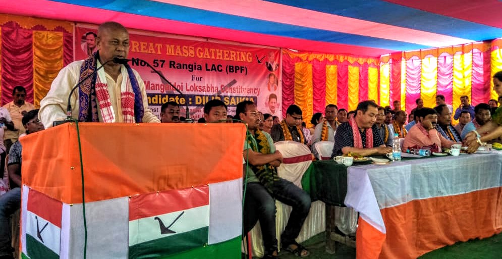 গোৰেশ্বৰঃ ৮ নং মঙলদৈ লোকসভা সমষ্টিৰ ভোট গ্ৰহণলৈ সাজু হৈ উঠিছে বিজেপি, এজেপি আৰু বিপিএফৰ মিত্ৰজোঁটৰ দল। “এবছু এনডিএফ বি সৈতে যদি থাকে তেন্তে ধ্বংস হ’ব বড়ো জাতি।” এই মন্তব্য বিটিচি প্ৰধান হাগ্ৰামা মহিলাৰীৰ।