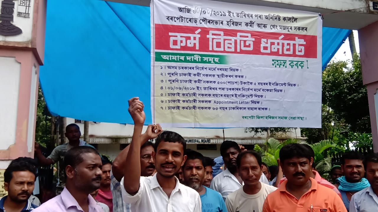 বৰপেটাঃ নামনি অসমৰ বাণিজ্য প্ৰধান চহৰৰ বৰপেটাৰোড পৌৰ সভাৰ হৰিজন চাফাই কৰ্মী আৰু গেং মজদূৰ সকলে সোমবাৰৰপৰা কৰ্ম বিৰতি ধৰ্মঘট কাৰ্য্যসূচী আৰম্ভ কৰে৷ তেওঁলোকৰ ৭ দফীয়া দাবী পূৰণ নকৰিলে এই কৰ্ম বিৰতি ধৰ্মঘট অনিৰ্দিষ্ট কালকৈ চলিব বুলি জানিব পৰা গৈছে৷