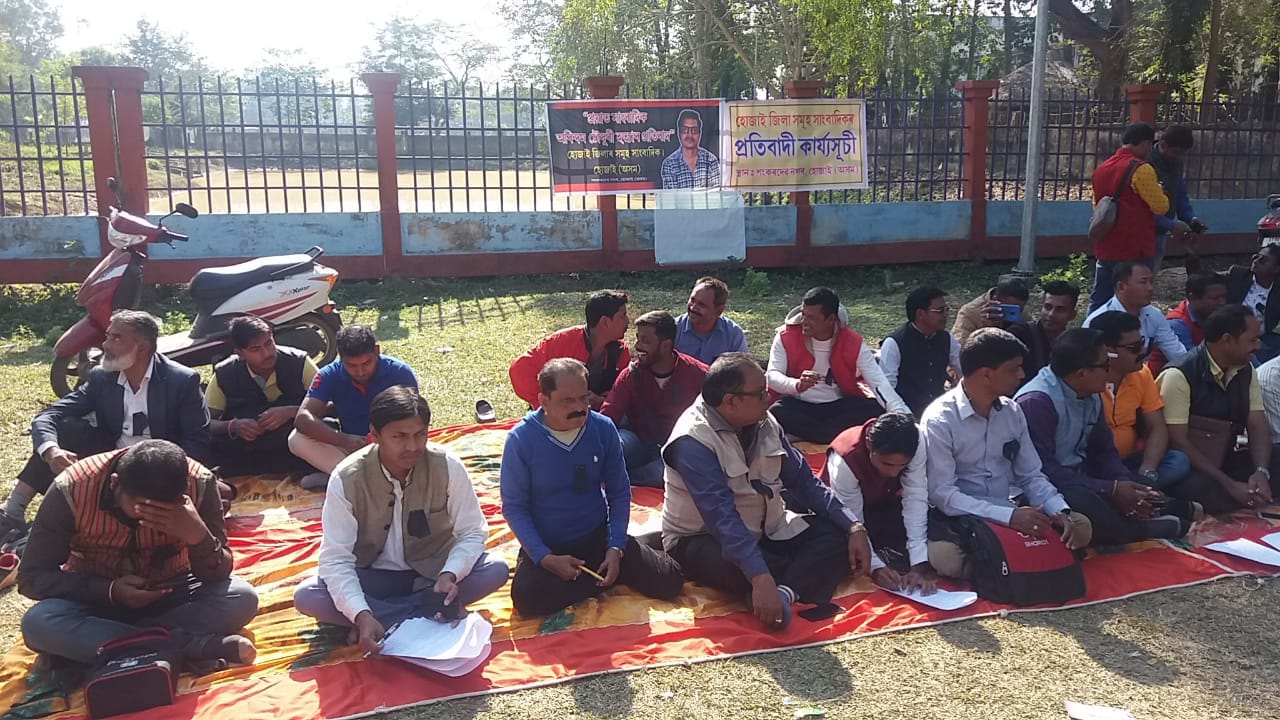 সাংবাদিক অৰিন্দম চৌধুৰী হত্যাৰ ন্যায় বিচাৰি হোজাই উপায়ুক্তৰ কাৰ্যালয়ৰ সন্মুখত সাংবাদিকৰ প্ৰতিবাদ