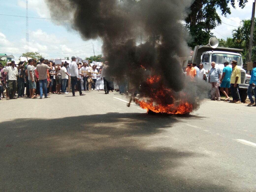 যোৱা ২৪ জুলাইত স্থানীয় ৰাইজে পথ অৱৰোধ কৰাৰ পিছত আজি পুৱা দহ বজাৰ পৰা পুনৰ তাই আহোম যুৱ পৰিষদৰ নেতৃত্বত স্থানীয় দল-সংগঠন আৰু ৰাইজৰ সহযোগত জাগুণ বজাৰৰ ১৫৩ নং ৰাষ্ট্ৰীয় ঘাইপথছোৱা তিনি ঘন্টা ধৰি অৱৰোধৰ লগতে বনমন্ত্ৰীৰ প্ৰতিকৃতি দাহ আৰু টায়াৰ জ্বলাই তীব্ৰ প্ৰতিবাদ সাব্যস্ত কৰে ৷