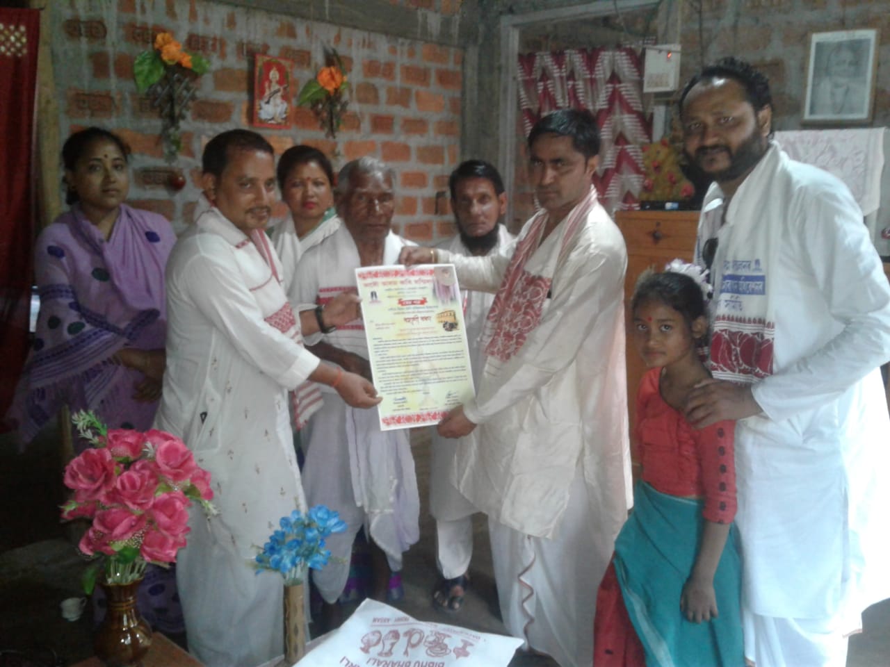 দিনৰ ১১ বজাতে শাখাটিৰ প্ৰতিনিধি সকলে পৰম্পৰাগত জাতীয় সাজ পৰিধান কৰি বিশিষ্ট নাগৰিক কেইগৰাকীৰ ঘৰলৈ গৈ একোখনকৈ ফুলাম গামোচা আৰু সদৌ অসম কবি সন্মিলনৰ সভাপতি নীলকান্ত শইকীয়া আৰু সম্পাদক উজ্জ্বল পাওগামৰ স্বাক্ষৰ সম্বলিত ‘স্নেহ পত্ৰ’ প্ৰদানেৰে বিহুৰ ওলগ তথা সম্বৰ্ধনা জনোৱাৰ লগতে আশীষ গ্ৰহণ কৰে৷