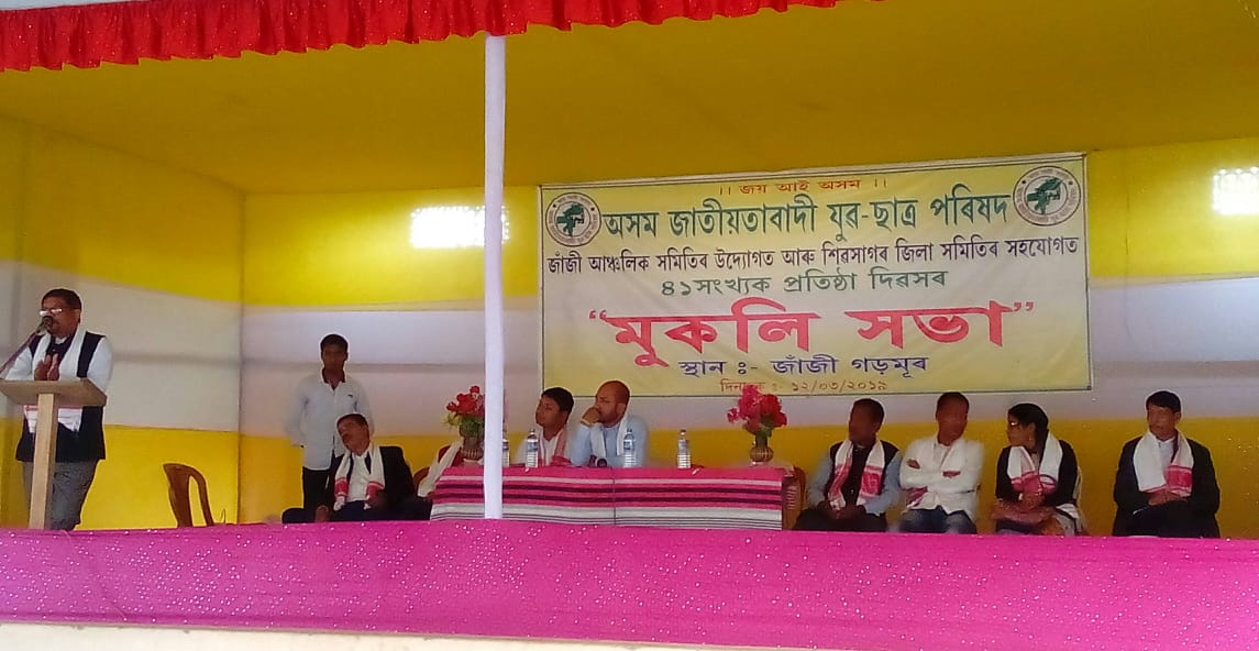 আমগুৰিঃ অসমৰ অন্যতম জাতীয় সংগঠন অসম জাতীয়তাবাদী যুৱ ছাত্ৰ পৰিষদৰ ৪১ সংখ্যক প্ৰতিষ্ঠা দিৱসত মঙলবাৰে জাঁজী গড়মূৰত জাঁজী আঞ্চলিক সমিতিৰ উদ্যোগত আৰু শিৱসাগৰ জিলা সমিতিৰ সহযোগত দিনজোৰা কাৰ্যসূচীৰে পালন কৰা হয়।