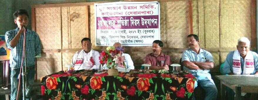বঙাইগাঁওঃ বঙাইগাঁও জিলাৰ কাকৈজানা অঞ্চলত অঞ্চলটোৰ সামাজিক উন্নয়নত দৃঢ়তাৰে কাম কৰি অহিছে “যুৱ সংস্কাৰ উন্নয়ন সমিতি,কাকৈজানা” নামৰ এটা বেচৰকাৰী সংস্থাই। বুধবাৰে সংস্থাটোৰ ২য় সংখ্যক প্ৰতিষ্ঠা দিৱস আৰু বাৰ্ষিক সভাখন কাকৈজানাৰ দেৱানপাৰাস্থিত চিলাৰায় শিশু নিকেতনত অনুষ্ঠিত হয়।