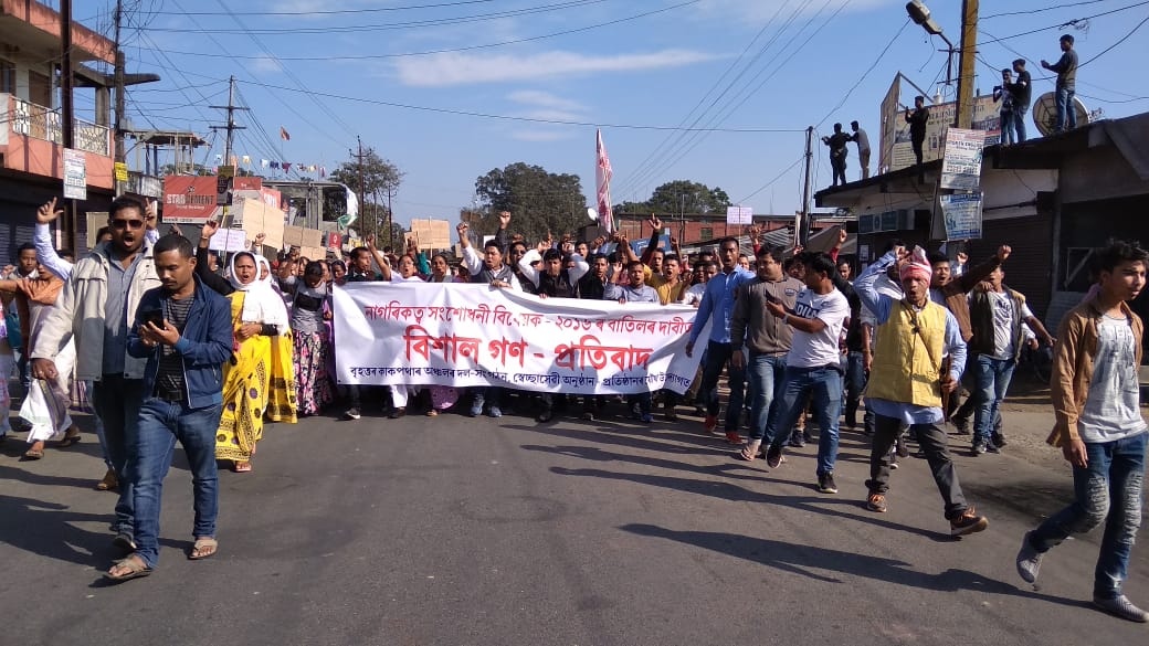 কাকপথাৰঃ নাগৰিকত্ব সংশোধনী বিধেয়ক ২০১৬ বাতিলৰ দাবীত কাকপথাৰত শুকুৰবাৰে বিশাল প্ৰতিবাদী সমদলেৰে প্ৰতিবাদ সাব্যস্ত কৰে৷ কাকপথাৰ ৰাজহুৱা খেলপথাৰৰপৰা আৰম্ভ হোৱা প্ৰতিবাদী সমদলটোৱে কাকপথাৰ চহৰৰ মাজেৰে ফৰেষ্ট গে’টলৈকে পৰিভ্ৰমণ কৰি পৰিৱেশ উত্তাল কৰি তোলে৷