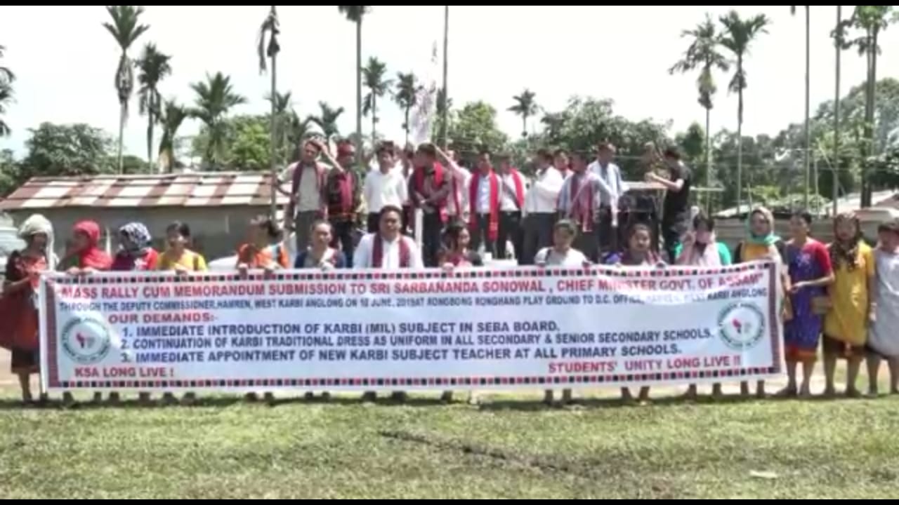 খেৰণিঃ পাহাৰীয়া জিলা পশ্চিম কাৰ্বি আংলঙৰ হামৰেনত সোমবাৰে কাৰ্বি ছাত্ৰ সংগঠনৰ উদ্যোগত বাহিৰ কৰে এক প্ৰতিবাদী সমদল। সমগ্ৰ কাৰ্বি আংলঙৰ বিদ্যালয় সমূহত কাৰ্বি সম্প্ৰদায়ৰ সাজপাৰ, কাৰ্বি ভাষাৰ বিষয় শিক্ষক নিযুক্তি, ৰাস্তাঘাট নিৰ্মাণসহ মুঠ পাঁচদফীয়া দাবীত কাৰ্বি ছাত্ৰ সংগঠনটোয়ে সাব্যস্ত কৰিছে প্ৰতিবাদ আৰু হামৰেনৰ মাজমজিয়াত বাহিৰ কৰে এক প্ৰতিবাদী সমদল।