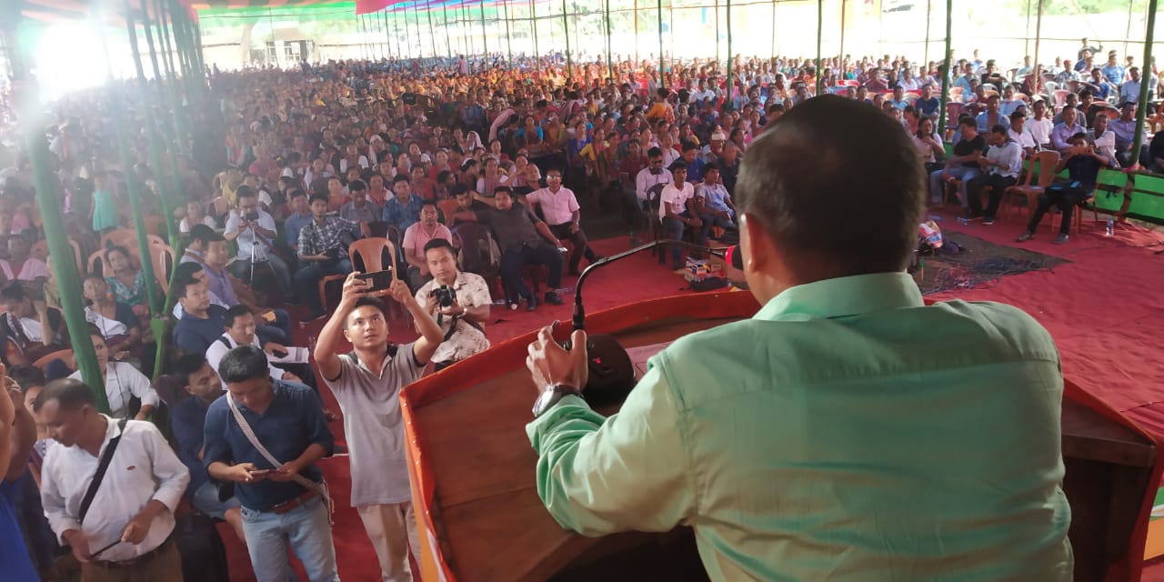 প্ৰধানমন্ত্ৰী জন আৰোগ্য যোজনা’ কাৰ্ড বিতৰণী সভাত মুখ্য অতিথি হিচাপে কাৰ্বি আংলং স্বায়ত্ত শাসিত পৰিষদৰ মুখ্য কাৰ্যবাহী সদস্য তুলিৰাম ৰংহাং উপস্থিত থকাৰ বিপৰীতে বৈঠালাংছ’ সমষ্টিৰ বিধায়ক ডঃ মানছিং ৰংপি, কাৰ্বি আংলং স্বাস্থ্য বিভাগৰ দায়িত্বত থকা কাৰ্যবাহী সদস্য খনছিং ৰংপি, অন্যান্য কাৰ্যবাহী সদস্যসকল, পৰিষদীয় সদস্যসকল, স্বাস্থ্য বিভাগৰ বিভাগীয় বিষয়া-কৰ্মচাৰীৰ লগতে বৃহত্তৰ পশ্চিম কাৰ্বি আংলঙৰ বিভিন্ন প্ৰান্তৰ তিনি সহস্ৰাধিক লোক উপস্থিত থাকে এই সভাত।