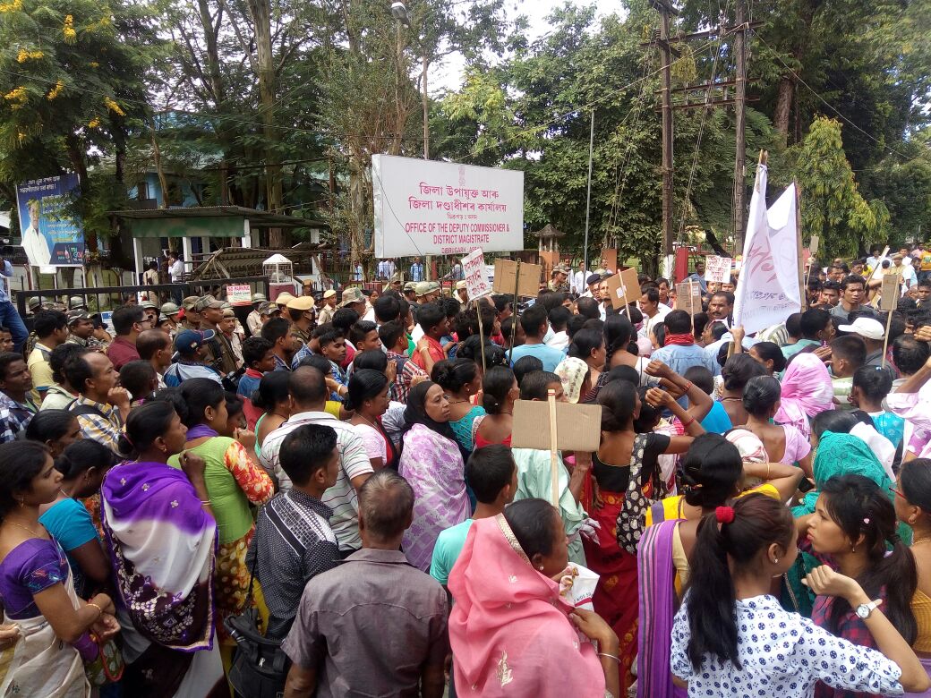 ৰাজ্য চৰকাৰে কৃষক নেতাজনৰ ওপৰত ৰাষ্ট্ৰদ্ৰোহৰ গোচৰ জাপি দি ৰাষ্ট্ৰীয় সুৰক্ষা আইনৰ অধীনত গ্ৰেপ্তাৰ কৰি জেলত বন্দী কৰাৰ প্ৰতিবাদত সোমবাৰেও ডিব্ৰুগড় জিলাৰ উপাযু়ক্তৰ কাৰ্যলয়ৰ সন্মুখত কৃষক মুক্তি সংগ্ৰাম সমিতি, ছাত্ৰ মুক্তি সংগ্ৰাম সমিতি আৰু চাহ শ্ৰমিক মুক্তি সংগ্ৰাম সমিতিয়ে এক বিশাল গণ ধৰ্ণা কাৰ্যসূচী ৰূপায়ণ কৰে।