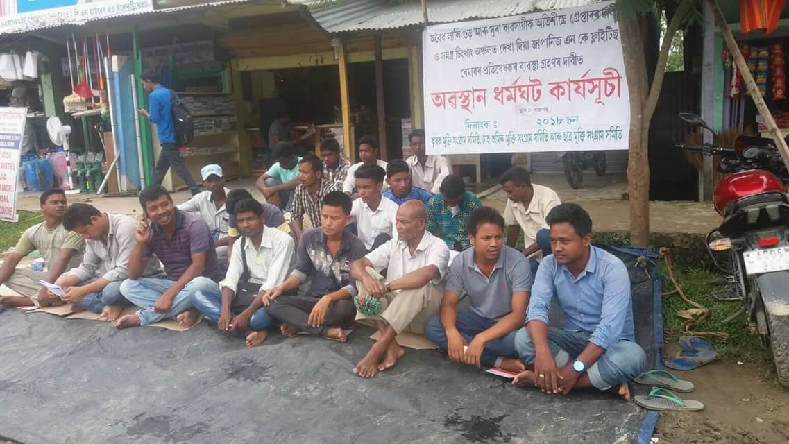 সংগঠন তিনিটাৰ অৰ্ধ শতাধিক নেতা কৰ্মীয়ে অৱস্থান ধৰ্মঘট কাৰ্যসূচীৰ জৰিয়তে ৰাজগড় আৰু টিংখাঙ অঞ্চলৰ অবৈধ সুৰাৰ ব্যৱসায়ীক গ্ৰেপ্তাৰ কৰা, লালি গুড়ৰ ব্যৱসায় বন্ধ কৰা আৰু জাপানিজ এনকেফেলাইটিছ ৰোগৰ প্ৰতিষেধক প্ৰদানৰ দাবী জনায়৷