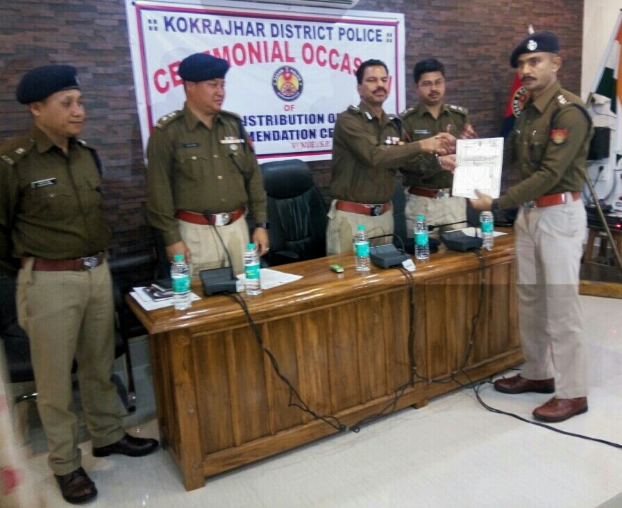 কোকৰাঝাৰঃ কোকৰাঝাৰ জিলাৰ পৰা ৫২ গৰাকীকৈ আৰক্ষীৰ বিষয়া-জোৱানে অসম আৰক্ষীৰ সঞ্চালকপ্ৰধানৰ পৰা প্ৰশস্তি পত্ৰ লাভ কৰাত জিলাখনৰ কৰ্মদক্ষ আৰক্ষীৰ মাজত সন্তুষ্টিৰ হাঁহি বিৰিঙিছে । সন্ত্ৰাস জৰ্জৰিত এলেকাটোত সন্ত্ৰাসদমনৰ মুখ্য ভূমিকা লোৱা তথা কৰ্মক্ষেত্ৰত দেখুওৱা নিপুণতা, সফলতাৰ বাবেই ডিজিপিৰ পৰা একেলগে ৫২ গৰাকীয়ে প্ৰশস্তিপত্ৰ লাভ কৰি একপ্ৰকাৰ অভিলেখ সৃষ্টি কৰিছে কোকৰাঝাৰ আৰক্ষীয়ে ।