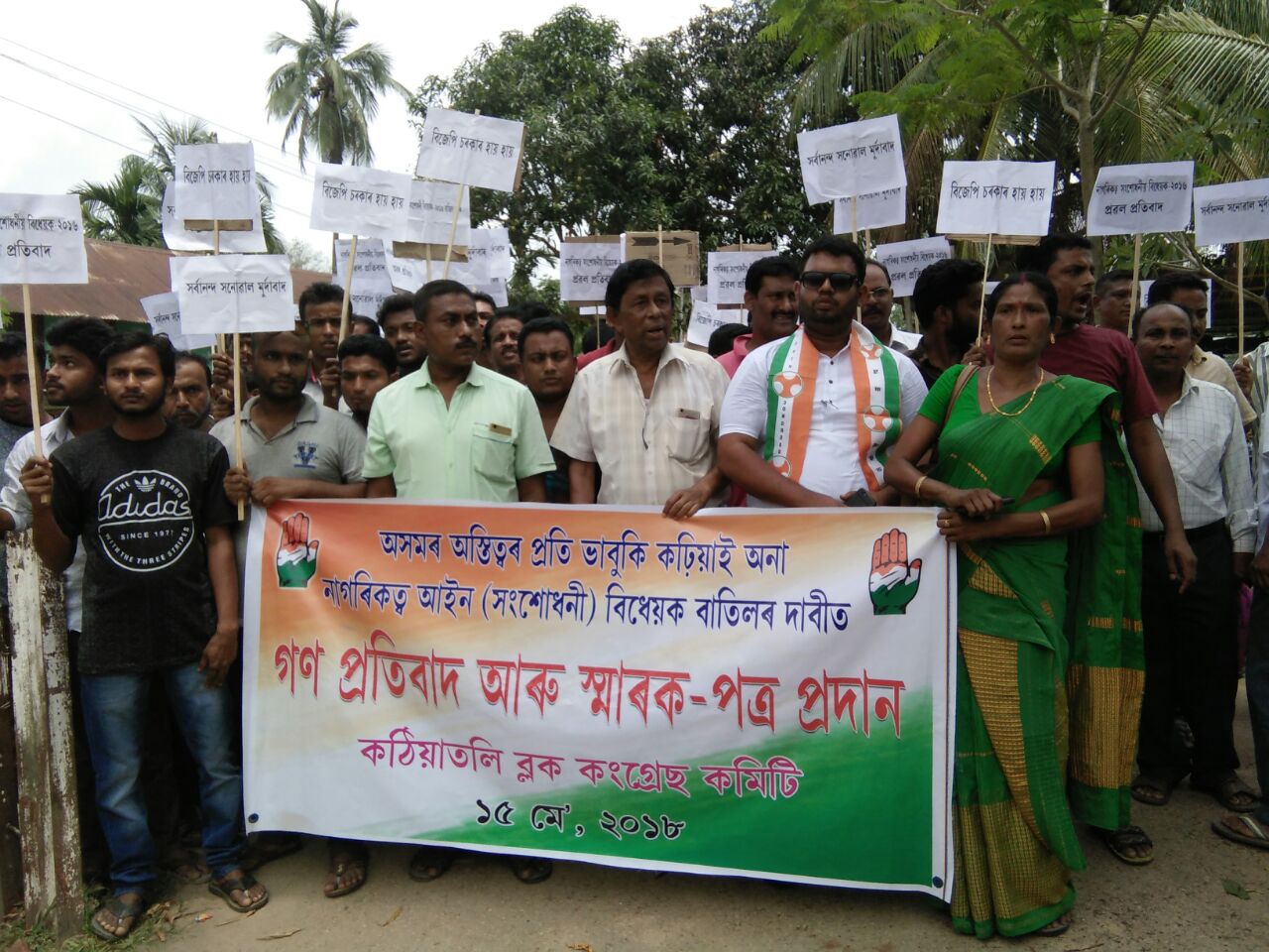 মঙলবাৰে কামপুৰৰ কঠীয়াতলীত প্ৰতিবাদ সাব্যস্ত কৰে কংগ্ৰেছে৷ কঠীয়াতলী ব্লক কংগ্ৰেছ সমিতিৰ উদ্যোগত কংগ্ৰেছ নেতা-কৰ্মীয়ে কেন্দ্ৰ-ৰাজ্য চৰকাৰৰ বিৰুদ্ধে প্ৰতিবাদ সাব্যস্ত কৰে। অসমৰ অস্তিত্বৰ প্ৰতি ভাবুকি কঢ়িয়াই অনা নাগৰিকত্ব সংশোধনী বিধেয়ক বাতিলৰ দাবীত কেইবাশতাধিক প্ৰতিবাদকাৰীয়ে বিজেপি চৰকাৰ হায় হায়, বিজেপি চৰকাৰ মুর্দাবাদ, বিজেপি চৰকাৰৰ দাদাগিৰী নচলিব আদি শ্ল’গানেৰে এক সমদল উলিয়াই আকাশ বতাহ কঁপাই তোলে৷