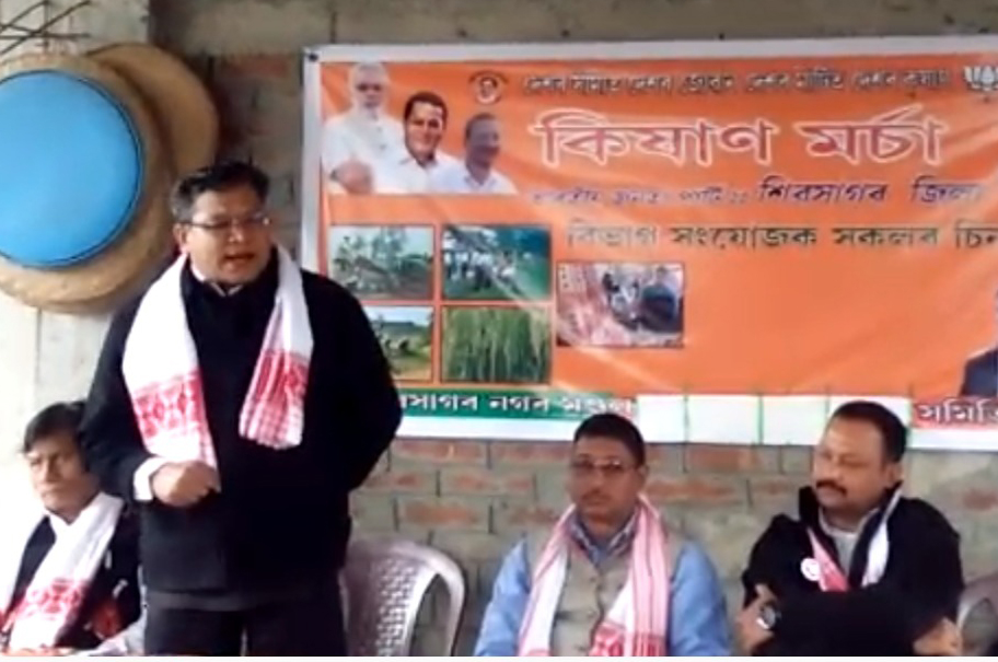 ‘‘দেশৰ সীমাত দেশৰ জোৱান, দেশৰ মাটিত দেশৰ কৃষাণ’’ শীৰ্ষক শ্ল’গানেৰে বিজেপিৰ ভাতৃ সংগঠন কৃষাণ মৰ্চাৰ শিৱসাগৰ জিলা সমিতিৰ এখন সভা অনুষ্ঠিত হয় বুধবাৰে৷ শিৱসাগৰ জিলাৰ কেপি চাৰিআলিৰ ঋতুৰাজ ভৱনত অনুষ্ঠিত কৃষাণ মৰ্চাৰ জিলা কৃষাণ মৰ্চাৰ সংযোজক সকলৰ উপস্থিতিত সভাখন অনুষ্ঠিত হয়৷ বন্তি প্রজ্বলনেৰে শিৱসাগৰ জিলা কৃষাণ মৰ্চাৰ সভাপতি বকুল দে’ই সভাৰ শুভাৰম্ভ কৰে৷