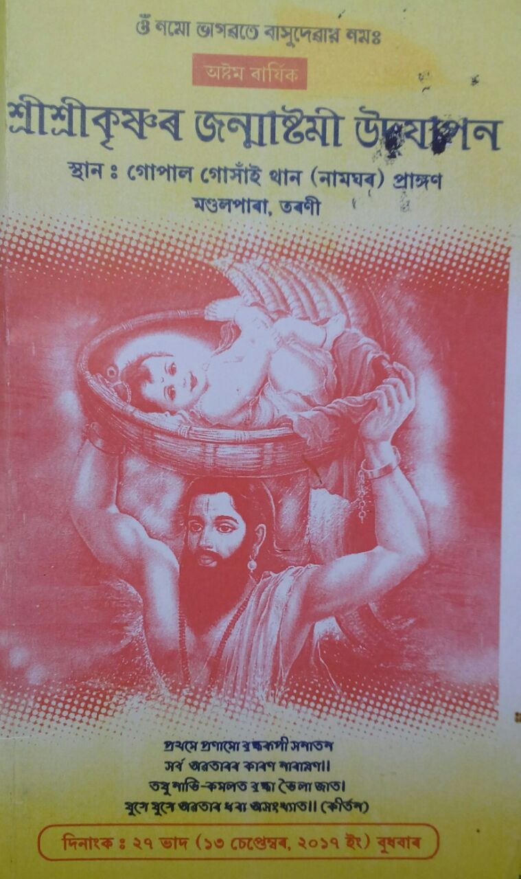 তুলসীবাৰীঃ পৰম ব্ৰহ্ম নাৰায়নৰ পূৰ্ণ অবতাৰ শ্ৰীকৃষ্ণৰ জন্মাষ্টমী উত্সৱ তৰণী মণ্ডলপাৰাস্থিত গোপাল গোসাই থান প্ৰাংগনত অহা ১৩ ছেপ্টেম্বৰত এদিনীয়া বৰ্ণাঢ্য কাৰ্যসূচীৰে আয়োজন কৰা হৈছে৷ অনুষ্ঠানটোৰ পৰিচালনাৰ্থে দিলীপ ভূঞাক সভাপতি, পংকজ শীল আৰু ভৃগুমনি ৰাজবংশীক সম্পাদক হিচাপে লৈ এখন শক্তিশালী সমিতিও গঠন কৰা হৈছে।