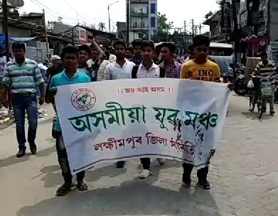 লখিমপুৰত অসমীয়া ভাষাৰ বাবে অসমীয়া যুৱ মঞ্চৰ প্ৰতিবাদ