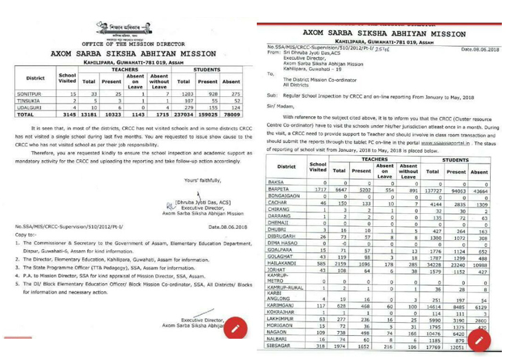 newsnextone.com | ওদালগুৰিঃ সৰ্বশিক্ষা অভিযান প্ৰেৰণ কৰা এখন পত্ৰই খলকনি লগাইছে বিটিএডি এলেকাত৷ সৰ্বশিক্ষা অভিযানৰ কাহিলীপাৰাস্থিত কাৰ্যালয়ে প্ৰেৰণ কৰা পত্ৰ খন ফাদিল কৰিছে ৰাজ্যৰ বহুকেইখন জিলাৰ শিক্ষা বিভাগৰ লগতে বিটিচিৰ শিক্ষা বিভাগ। পত্ৰখনত ৰাজ্যৰ প্ৰাথমিক বিদ্যালয়সমূহ পৰিদৰ্শনৰ দায়িত্বত থকা একাংশ চিআৰচিচিসকলে দায়িত্বত পালনত গাফিলতি কৰাৰ কথা পোহৰলৈ আহিছে। চিআৰচিচিসকলে মাহত এবাৰকৈ হ’লেও প্ৰতিখন বিদ্যালয় পৰিদৰ্শন কৰি তাৰ চিন স্বৰূপে উপস্থিতিৰ তথ্য তেওঁলোকক চৰকাৰে দিয়া টেবলেটৰ জৰিয়তে অনলাইন পোৰ্টেলত আপলোড কৰিব লাগে যদিও সেই নিয়ম পালন নকৰাৰ অভিযোগ উত্থাপন হৈছে পত্ৰ খনত৷ পত্ৰখনে উদঙাই দিছে তেওঁলোকে কৰ্তব্য কৰি অহা গাফিলতিৰ কথা।