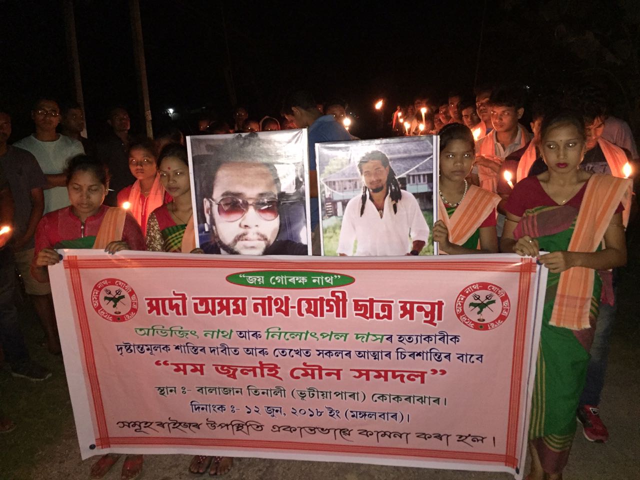 newsnextone.com | কোকৰাঝাৰঃ কাৰ্বি আংলঙৰ ডকমকাত গুৱাহাটীৰ দুই উদীয়মান যুৱক নিলোৎপল দাস আৰু অভিজিৎ নাথক দুৰ্বৃত্তই নৃসংশভাৱে হত্যা কৰা ঘটনাৰ প্ৰতিবাদত আৰু দোষীক কঠোৰ শাস্তি প্ৰদানৰ দাবীত মঙলবাৰে সদৌ অসম নাথ যোগী ছাত্ৰ সন্থা, আক্ৰাছু আৰু স্মাইল ৱেলফেয়াৰ ছছাইটিয়ে সন্ধিয়া ৭ বাজি ৩০ মিনিটত কোকৰাঝাৰত মম জ্বলাই মৌন সমদল উলিয়াই৷