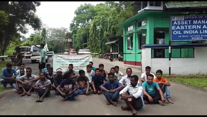 থলুৱা যুৱকক বঞ্চিত কৰাৰ অভিযোগ, ডিগবৈৰ অইলৰ মুখ্য প্ৰৱেশ দ্বাৰত স্থানীয় যুৱকৰ প্ৰতিবাদ