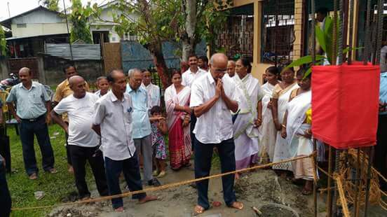 মন্দিৰ পৰিচালনা সমিতিৰ সভাপতি ৰাজেন্দ্ৰ বৰ্মন আৰু সম্পাদক ৰাজেশ ৰাণা মেধিয়ে আতঁধৰা অনুষ্ঠানত মন্দিৰৰ আনুষ্ঠানিক ভাৱে শিলান্যাস কৰে-সমাজ সেৱক চন্দ্ৰ কলিতা আৰু লখেশ্বৰ শৰ্মাই।