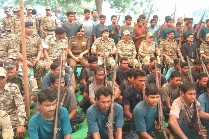বাছাৰ আৰক্ষীৰ মহাপৰিদৰ্শক বিবেকানন্দ সিনহা আৰু নাৰায়ণপুৰৰ অৰক্ষী অধিক্ষক জীতেন্দ্ৰ শুক্লাৰ উপস্থিতিত মাওবাদীসকলে মূল সুঁতিলৈ ঘূৰি অহাৰ লগতে ঘৰুৱাভাৱে নিৰ্মিত ৫১ টা বন্দুক জমা দিয়ে।