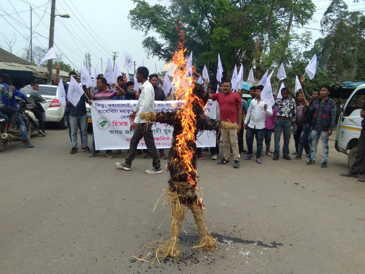 ঘাইপথ মেৰামতিৰ দাবীত হিমন্ত বিশ্ব শৰ্মাৰ প্ৰতিকৃতি দাহ