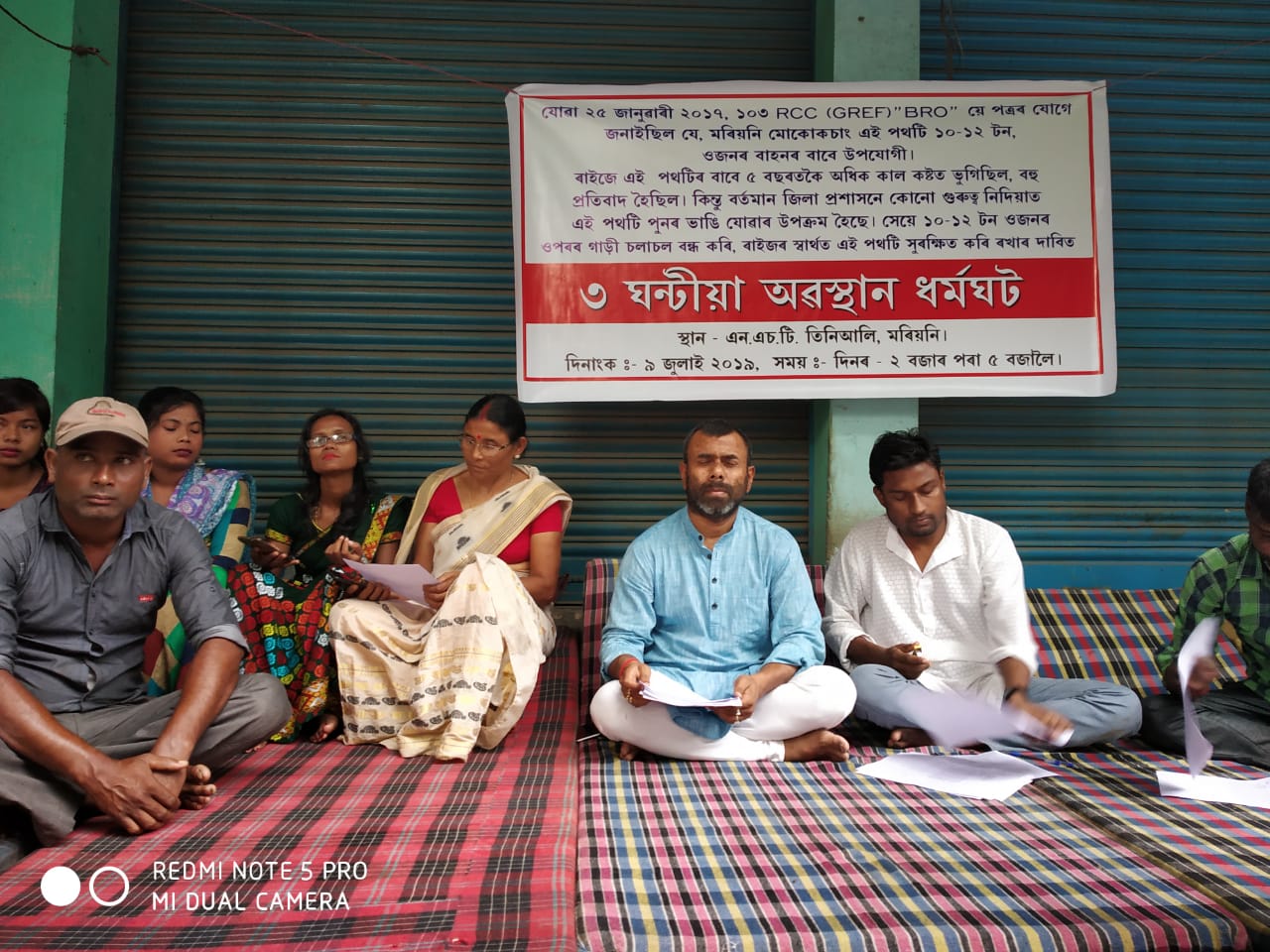 তাৰ মাজতে হঠাৎ ৰাজ্য চৰকাৰ তথা কেন্দ্ৰীয় চৰকাৰৰ বিৰুদ্ধে অৱস্থান কৰা দেখা গ’ল মঙলবাৰে মৰিয়নীত৷ বিধায়ক ৰূপজ্যোতি কুৰ্মীয়ে মৰিয়নীৰ অন্যতম এটা পথ MKG পথ পুনৰ নিৰ্মাণ আৰু এই পথৰ ওপৰেদি ১২ টনৰ অধিক ওজনৰ গাড়ী চলাচলত বাধা দাবীত প্ৰতিবাদ কৰে।