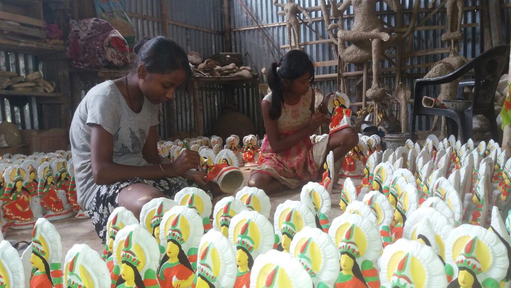 সম্প্ৰতি সমগ্র ৰাজ্যৰ লগতে বঙাইগাঁও জিলাৰ অভয়াপুৰীতো ইতিমধ্যে দুৰ্গোৎসৱৰ আয়োজক সমিতি সমূহে মা-দুৰ্গাক আদৰিবলৈ বিভিন্ন আলোক সজ্জাৰে আৰু আটকধুনীয়া মণ্ডপেৰে প্ৰস্তুতি প্ৰায় সম্পূৰ্ণ কৰি তোলাৰ সমান্তৰালকৈ ব্যস্ততা বাঢ়িছে মৃৎভাস্কৰ্য্য শিল্পী সকলৰ৷ অভয়াপুৰীৰ শিৱপুৰৰ মৃৎশিল্পী সকলে পূজাথলীত বহা অস্থায়ী বজাৰ সমূহ আদৰিবলৈ আৰু ক্ৰেতা ৰাইজক আকৰ্ষিত কৰিবলৈ দিনে-নিশাই ব্যস্ত হৈ পৰিছে হিন্দু ধৰ্মীয় বিভিন্ন দেৱ-দেৱীৰ মৃন্ময় মূৰ্ত্তিৰ লগতে মাটিৰ আকৰ্ষণীয় সামগ্ৰী প্ৰস্তুত কৰাত।