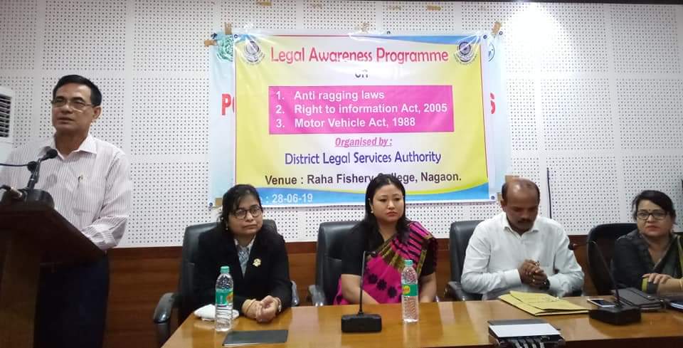 জয়ন্ত মুদৈ, নগাঁওঃ নগাঁও জিলা আইন সেৱা প্ৰাধিকাৰীৰ উদ্যোগত মঙলবাৰে ৰহা মীন মহাবিদ্যালয়ৰ প্ৰেক্ষাগৃহত বিয়লি এখনি আইন সজাগতা সভা অনুষ্ঠিত কৰা হয়৷ নগাঁও আইন সেৱা প্ৰাধিকাৰীৰ সম্পাদিকা তথা অতিৰিক্ত মুখ্য ন্যায়িক দণ্ডাধীশ প্ৰনিতা মৰাঙৰ ভাষণৰে আৰম্ভ হোৱা সভাখনত ৰেগিঙৰ ভয়াবহতাৰ লগতে ৰেগিং সম্পৰ্কত সৰ্বোচ্চ ন্যায়ালয়ৰ বিভিন্ন নীতি-নিৰ্দেশনা তথা শাস্তিৰ সম্পৰ্কত বিস্তৃতভাৱে ব্যাখ্যা আগবঢ়ায় জ্যেষ্ঠ অধিবক্তা মুকুল প্ৰসাদ বৰঠাকুৰে।
