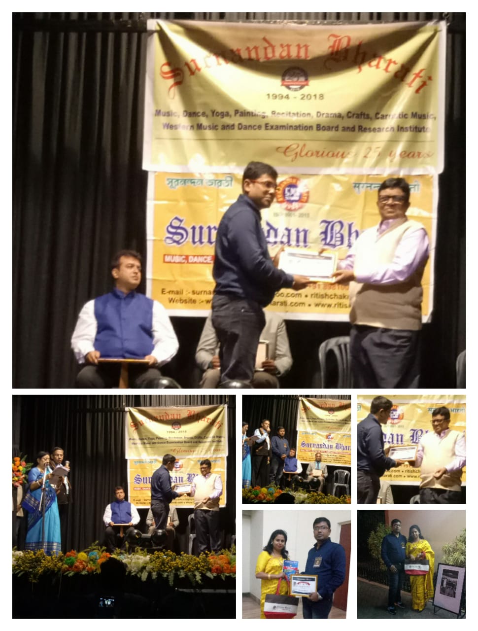 নগাঁওঃ সুৰনন্দন ভাৰতীৰ ৰূপালী জয়ন্তী বৰ্ষ উপলক্ষে কলকতাৰ বিড়লা একাডেমিত আয়োজন কৰা ৰূপালী জয়ন্তী অনুষ্ঠানত নগাঁৱৰ চিত্ৰশিল্পী তথা শংকৰ-মাধৱ চিত্ৰকলা বিদ্যালয়ৰ অধ্যক্ষ ধ্ৰুৱজ্যোতি শৰ্মা বৰুৱাক “চিত্ৰনন্দন” সন্মানেৰে সন্মানিত কৰা হয়।
