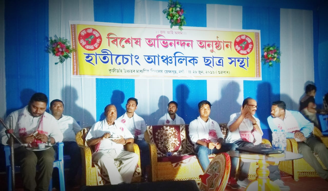 জয়ন্ত মুদৈ, নগাঁওঃ নগাঁও জিলাৰ বেবেজীয়াৰ সমীপৰ কুজিদাঁহ উচ্চতৰ মাধ্যমিক বিদ্যালয়ৰ প্ৰেক্ষাগৃহত শুকুৰবাৰে হাতীচোং আঞ্চলিক ছাত্ৰ সন্থাৰ বিশেষ অভিনন্দন অনুষ্ঠানটি অনুষ্ঠিত কৰা হয়৷ এই মৰ্মে বিয়লি এক বজাৰপৰা হাতীচোং আঞ্চলিক ছাত্ৰ সন্থাৰ সভাপতি কৃতাঞ্জল বৰাৰ পৌৰহিত্যত অনুষ্ঠিত সভাখনি ছাত্ৰীসকলৰ দ্বাৰা পৰিৱেশিত এটি সমবেত সংগীতেৰে শুভাৰম্ভ কৰা হয়৷