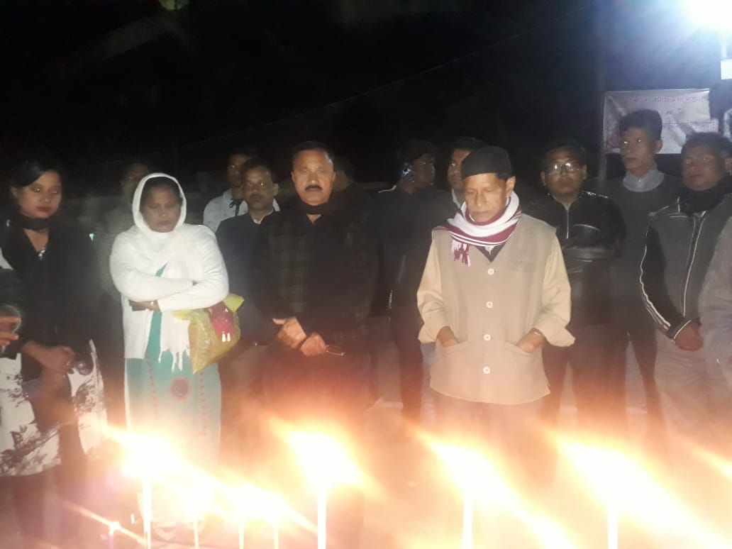 নগাঁওঃ যোৱা ১৪ ফেব্ৰুৱাৰীত কাশ্মীৰৰ পুলৱামাৰ অৱন্তিপুৰাত সন্ত্রাসবাদী সংগঠন জইচ-ই-মহম্মদে ভয়ংকৰ বিস্ফোৰণ ঘটাই ৪২ জনকৈ ভাৰতীয় জোৱানৰ প্ৰাণ কাঢ়ি নিয়া ঘটনাৰ প্ৰতিবাদত সোমবাৰে জাজৰিত ৰাজহুৱা শ্ৰদ্ধাঞ্জলি জ্ঞাপন কৰা হয়।
