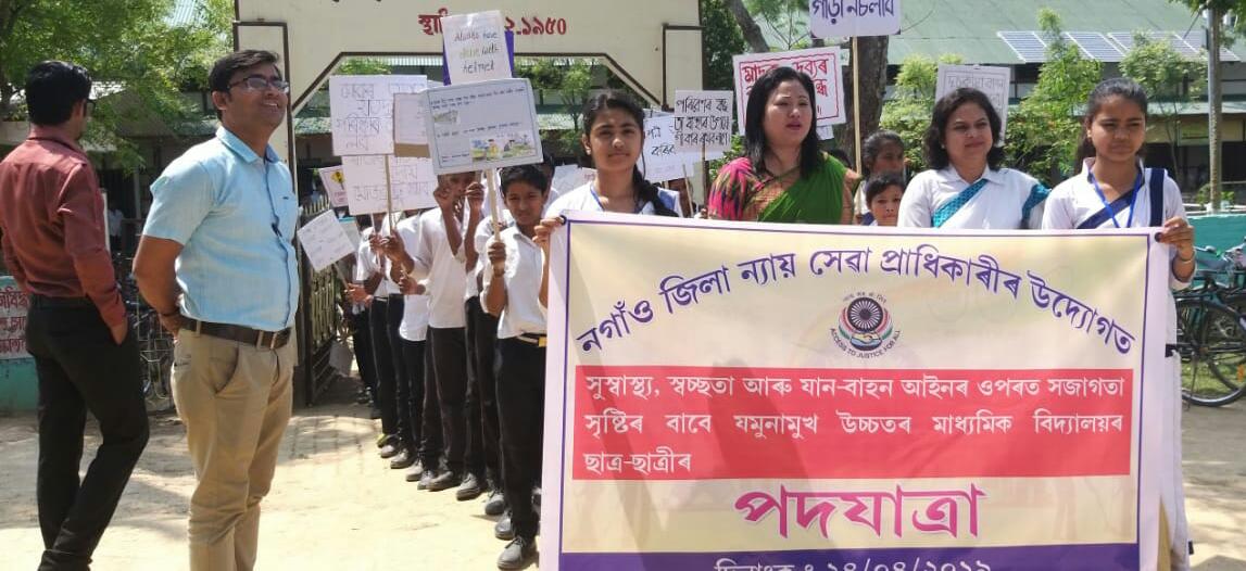জয়ন্ত মুদৈ, নগাঁওঃ নগাঁও জিলা ন্যায় সেৱা প্ৰাধিকাৰীৰ উদ্যোগত যমুনামুখ উচ্চতৰ মাধ্যমিক বিদ্যালয়ৰ লিগেল লিটাৰেচী ক্লাছৰ সহযোগত বুধবাৰে পুৱা ১১ বজাত বিদ্যালয়ৰ প্ৰায় ডেৰ শতাধিক ছাত্র-ছাত্রী, শিক্ষক-শিক্ষয়িত্রীৰ লগতে ন্যায় সেৱা প্ৰাধিকাৰীৰ সম্পাদিকা প্ৰণিতা মৰাঙৰ লগতে পেনেল অধিৱক্তাদ্বয় ৰূপালী গোস্বামী, জেছমিন বেগম আৰু বিদ্যালয়ৰ অধ্যক্ষ জ্যোতিপ্ৰসাদ বৰাৰ অংশগ্ৰহণেৰে বৃহত্তৰ যমুনামুখ অঞ্চলৰ মাজেৰে এটি পদযাত্রাত উলিওৱা হয়|