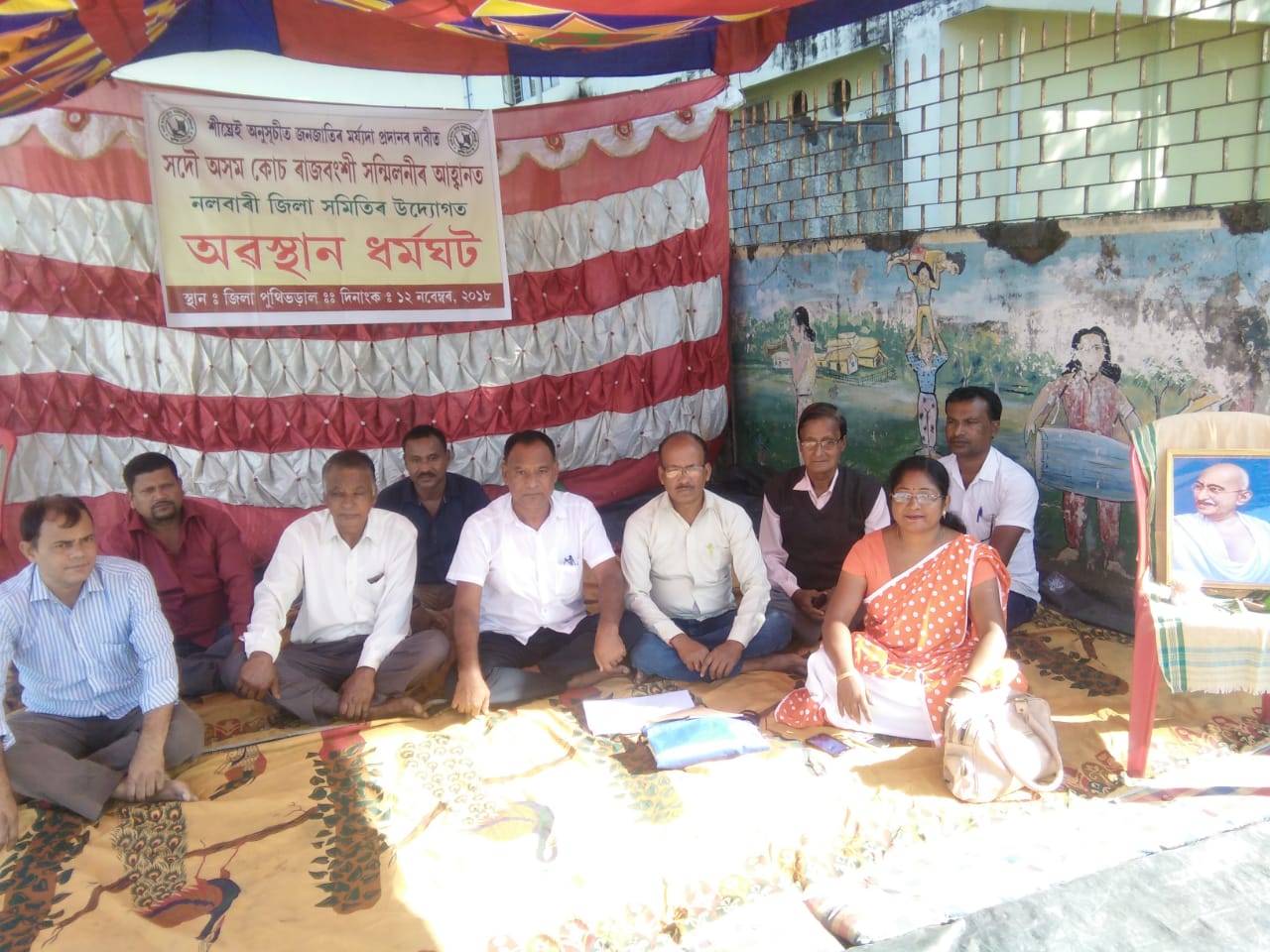 নলবাৰীঃ সদৌ অসম কোচ ৰাজবংশী সন্মিলনৰ অাহ্বানত শীঘ্ৰেই অনুসূচীত জনজাতিৰ মৰ্যদা প্ৰদানৰ দাবীত নলবাৰী জিলা সমিতিয়ে জিলা পুথি ভড়ালৰ সন্মুখত ৩ ঘন্টীয়া অৱস্থান ধৰ্মঘট কাৰ্য্যসূচী ৰূপায়ন কৰে।