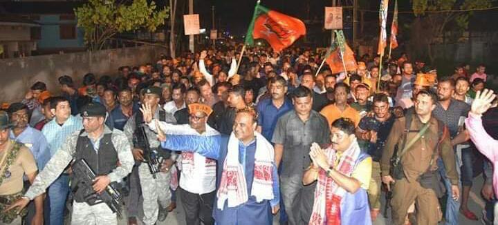 নলবাৰীঃ ৮ নং মংগলদৈ লোকসভা সমষ্টিৰ নিৰ্বাচনলৈ কেইটামান দিন বাকী থকাত মংগলবাৰে নলবাৰী বিধানসভা সমষ্টিত বিজেপি মিত্ৰ জোঁটৰ প্ৰাৰ্থী দিলীপ শইকীয়াৰ হৈ হিমন্ত বিশ্ব শৰ্মাই এক বিশাল ৰোড শ্ব’ৰে নিৰ্বাচনী প্ৰচাৰ চলায়৷