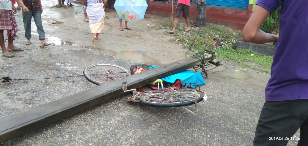 নলবাৰীৰ পৰা হেমন্ত কলিতাঃ নলবাৰী জিলাৰ বাহঁজানীত বুধবাৰে পুৱা পথৰ ওপৰতে বিদ্যুতৰ খুঁটা এটা উভালি পৰি এগৰাকী ছাত্ৰী গুৰুতভাৱে আহত হয়৷