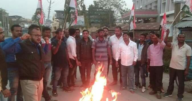 নলবাৰী সমষ্টিৰ শিক্ষিত নিবনুৱাক বঞ্চিত কৰি নলবাৰী জিলাৰ একাংশ শীৰ্ষস্থানীয় বি জে পি নেতাই চক্ৰান্ত কৰি নিজৰ পৰিয়ালৰ সদস্য আৰু পালিনেতাক অনিয়মেৰে নিযুক্তি দিয়াৰ প্ৰতিবাদত পঞ্চায়ত আৰু গ্ৰামোন্নয়ন মন্ত্রী নৱ কুমাৰ দলে আৰু নলবাৰী সমষ্টিৰ বিধায়ক অশোক শৰ্মাৰ প্ৰতিকৃতি দাহ কৰে৷