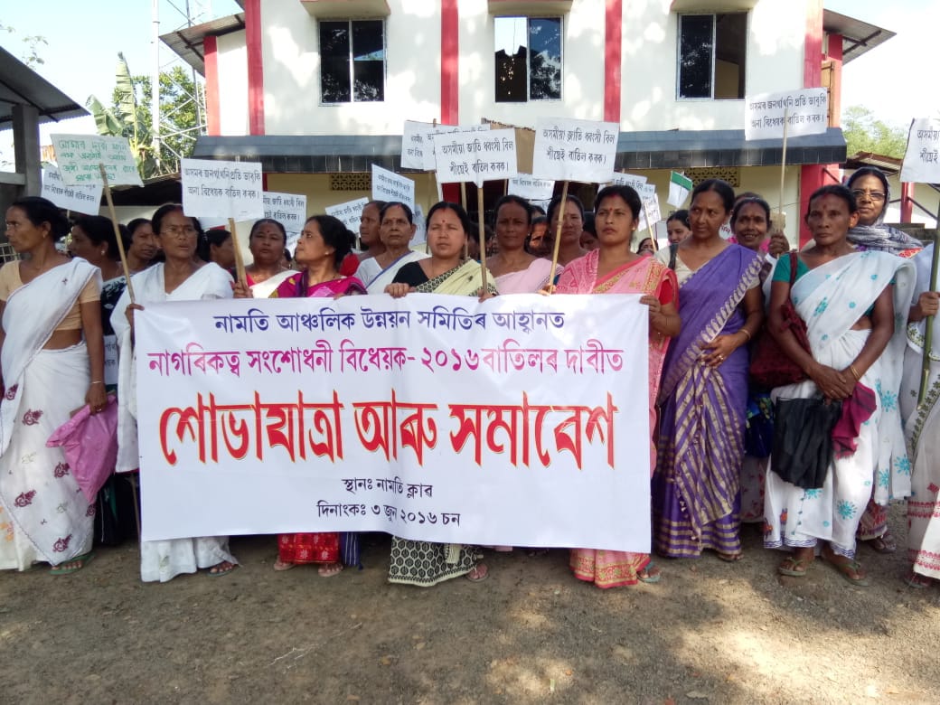 বৃহত্তৰ নামতি অঞ্চলৰ ৪৬ খন গাঁৱৰ মহিলাই অংশগ্ৰহণ কৰা সমাবেশত সভাপতিত্ব কৰে অৱসৰ প্ৰাপ্ত শিক্ষক, নামতি জ্যেষ্ঠ নাগৰিক সন্মিলনৰ সভাপতি চামচুল হুচেইনে। ৰেখামণি গগৈয়ে উদ্দেশ্যে ব্যাখ্যা কৰা সমাবেশত জাতি, ভাষা, ধৰ্ম নিৰ্বিশেষে ভাৰত চৰকাৰে জাতিধ্বংসী, নাগৰিকত্ব সংশোধনী বিধেয়কৰ বিৰুদ্ধে ওলাই আহে।