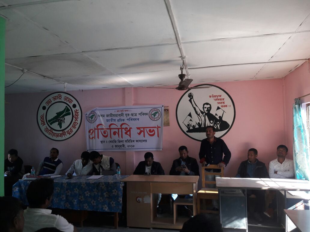 দ্বীপ শইকীয়াক সভাপতি আৰু ইন্দ্ৰ সন্দিকৈক সাধাৰণ সম্পাদক হিচাপে লৈ ১৪ জনীয়া তদৰ্থ সমিতি গঠন কৰা হয়। তিনিমাহৰ ভিতৰত পূৰ্ণাংগ জিলা সমিতি গঠন কৰাৰ সিদ্ধান্ত গ্ৰহণ কৰাৰ প্ৰস্তাৱ গ্ৰহণ কৰা সভাত জিলা সমিতিৰ ভাৰপ্ৰাপ্ত সভাপতি প্ৰিয়াংকু প্ৰতীম চুতীয়া, সাধাৰণ সম্পাদক বিষ্ণু শৰ্মা, কেন্দ্ৰীয় সমিতিৰ সাংস্কৃতিক সম্পাদক দেৱজিত দাস উপস্থিত থাকে৷