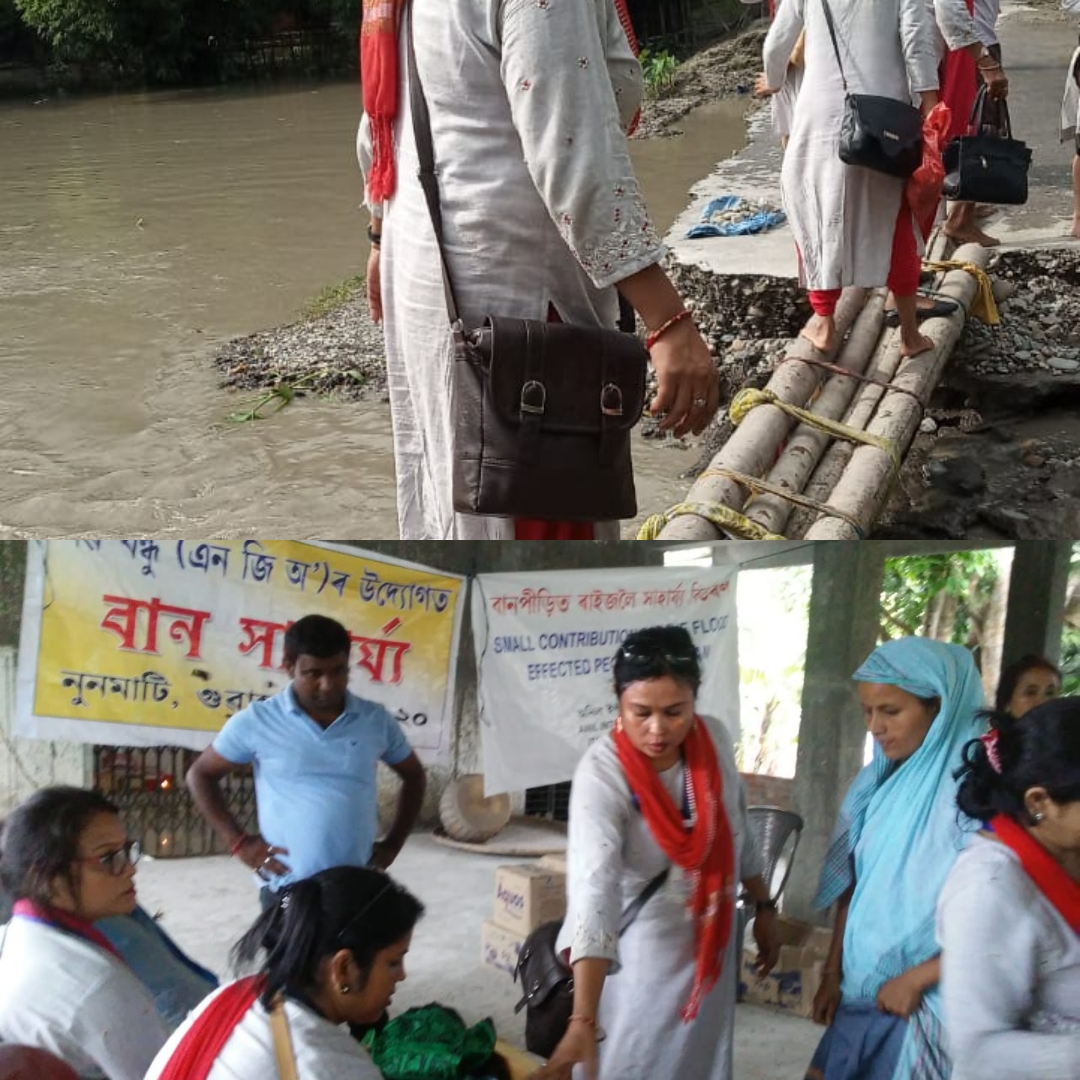 গুৱাহাটীঃ গুৱাহাটী নুনমাটি ‘নৱ বন্ধু’ এনজিঅ’ৰ মহিলাসকলে যোৱা বৃহস্পতিবাৰে বানপীড়িত ৰাইজক সাহায্য আগবঢ়ায়৷