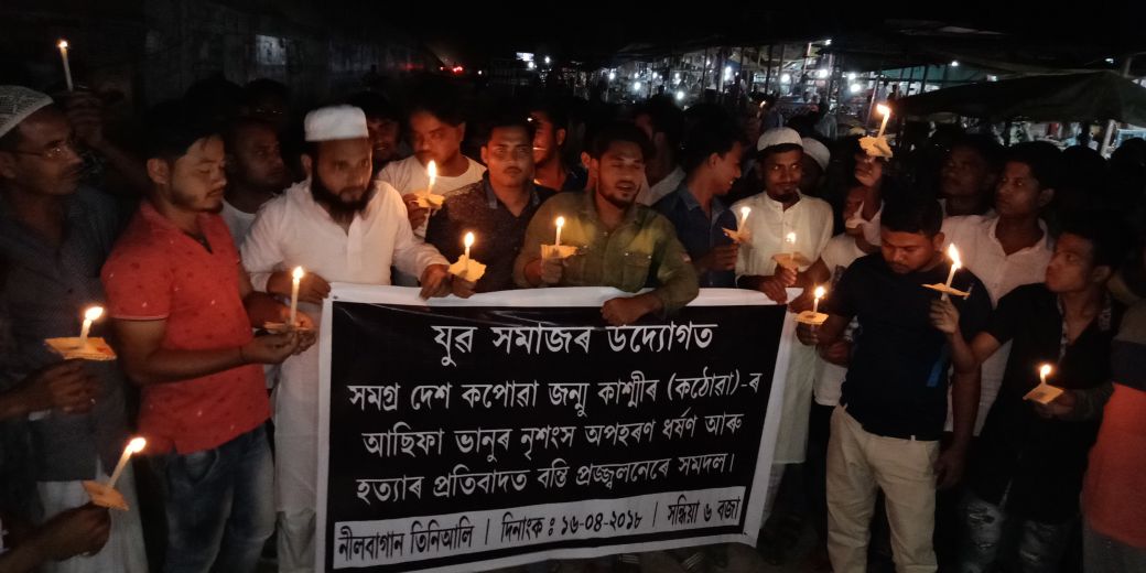 ৰাজপথত হাতে হাতে মমবাতি জ্বলাই তীব্ৰ প্ৰতিবাদ সাব্যস্ত কৰি নাৰীক সুৰক্ষা দিয়াৰ দাবী জনায়৷ ন্যায় বিচাৰি নীলবাগানৰ শতাধিক যুৱকে নীলবাগান মডেল হস্পিতালৰ সন্মুখত সমবেত হৈ নীলবাগান তিনিআলিলৈ প্ৰায় এক কিলোমিটাৰ পথ সমদল কৰি প্ৰতিবাদ সাব্যস্ত কৰে। মানৱতাক ভূ-লুন্ঠিত কৰা দেশ তথা ৰাজ্যত সংঘটিত ঘটনাৰ অপৰাধীক ফাঁচী দিয়াৰ দাবী জনায়৷