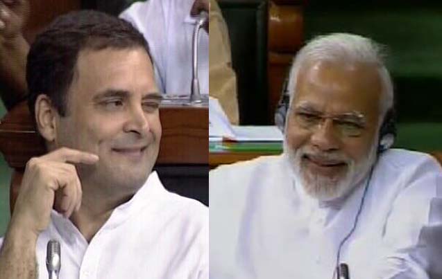 PM Narendra Modi laughs after Rahul Gandhi says 'Pradhanmantri apni aankh meri aankh mein nahi daal sakte' #NoConfidenceMotion pic.twitter.com/qwXNt6PphM