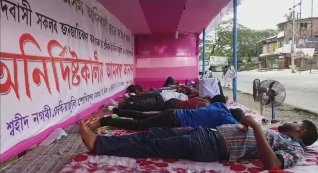 ঢেকীয়াজুলিঃ নিজ জনগোষ্ঠীৰ বাবে ছাত্ৰ নেতাই ভোকে-পিয়াহে অনাহাৰে পাৰ কৰিলে দুদিন৷ পথৰ দাতিত টানি লোৱা ত্ৰিপালৰ তলত ৪৮ ঘন্টা পাৰ কৰিলে সদৌ অসম চাহ জনজাতি ছাত্ৰ সন্থাৰ কেইবাগৰাকী নেতাই৷