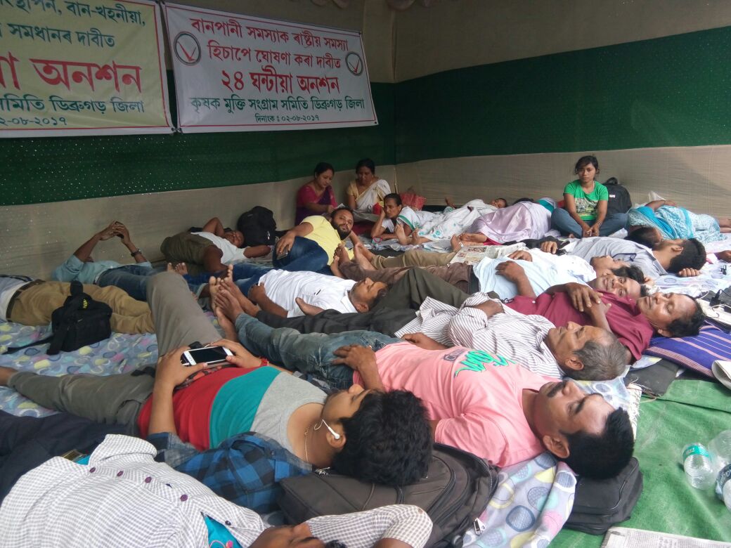 সংগঠনটোৱে ৰাজ্যৰ সকলো ঠাইৰ লগতে ডিব্ৰুগড় জিলাতো বানপীড়িতক সাহায্য দিয়া, বানপানীক ৰাষ্ট্ৰীয় সমস্যা হিচাপে ঘোষণা কৰা আৰু বৃহৎ নদীবান্ধৰ নিৰ্মাণ বন্ধ কৰাৰ দাবীত বুধবাৰৰ পৰা ২৪ ঘন্টীয়া অনশন কাৰ্যসূচী ডিব্ৰুগড় জিলাত ৰূপায়ণ কৰে।