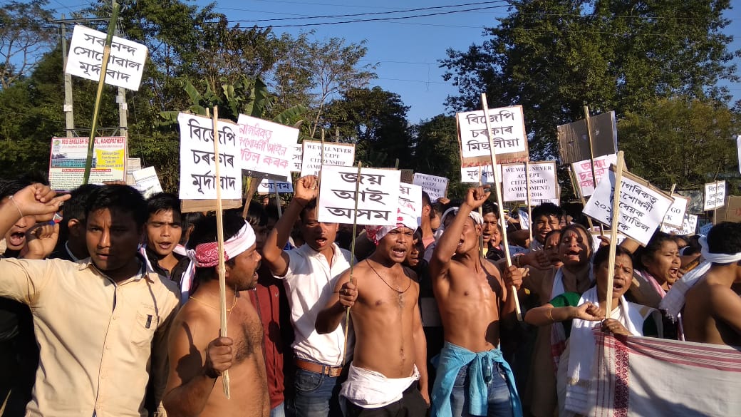 ১ নং সৰুডিৰাক ৰাজহুৱা খেলপথাৰৰ পৰা আৰম্ভ হোৱা অৰ্ধ উলংগ প্ৰতিবাদী সমদলটোৱে ডিৰাক চাৰিআলি হৈ ৰংপুৰীযা গাওঁলৈকে পৰিভ্ৰমণ কৰি পৰিবেশ উত্তাল কৰি তোলে ৷ “হিন্দু নাগৰিকত্ব বিধেয়ক ২০১৬ বাতিল কৰক” “নৰেন্দ্ৰ মোদী হুছিয়াৰ”, “সৰ্বানন্দ সোণোৱাল গ’ বেক”, “বিজেপি গ’ বেক”, “বিজেপি নিপাত যাওঁক”,”অসম চৰকাৰ হায় হায়”, “সৰ্বানন্দ সোণোৱাল জাতিদ্ৰোহী” ইত্যাদি বিভিন্ন শ্লগানেৰে আকাশ-বতাহ কপাঁই তোলে ৷