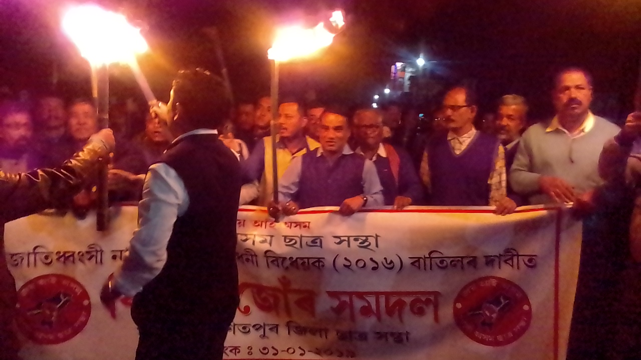 শোনিতপুৰ জিলা ছাত্ৰ সন্থা ৰ উদ্যোগত নাগৰিকত্ব সংশোধনী বিধেয়ক ২০১৬ বাতিলৰ দাবীত তেজপুৰত জোৰ সমদল কৰি তীব্ৰ প্ৰতিবাদ সাব্যস্ত কৰি এই জাতিধ্বংসী বিধেয়ক বাতিলৰ বাবে অসম চৰকাৰ আৰু কেন্দ্ৰীয় চৰকাৰক সকীয়াই দিয়া হয় ।