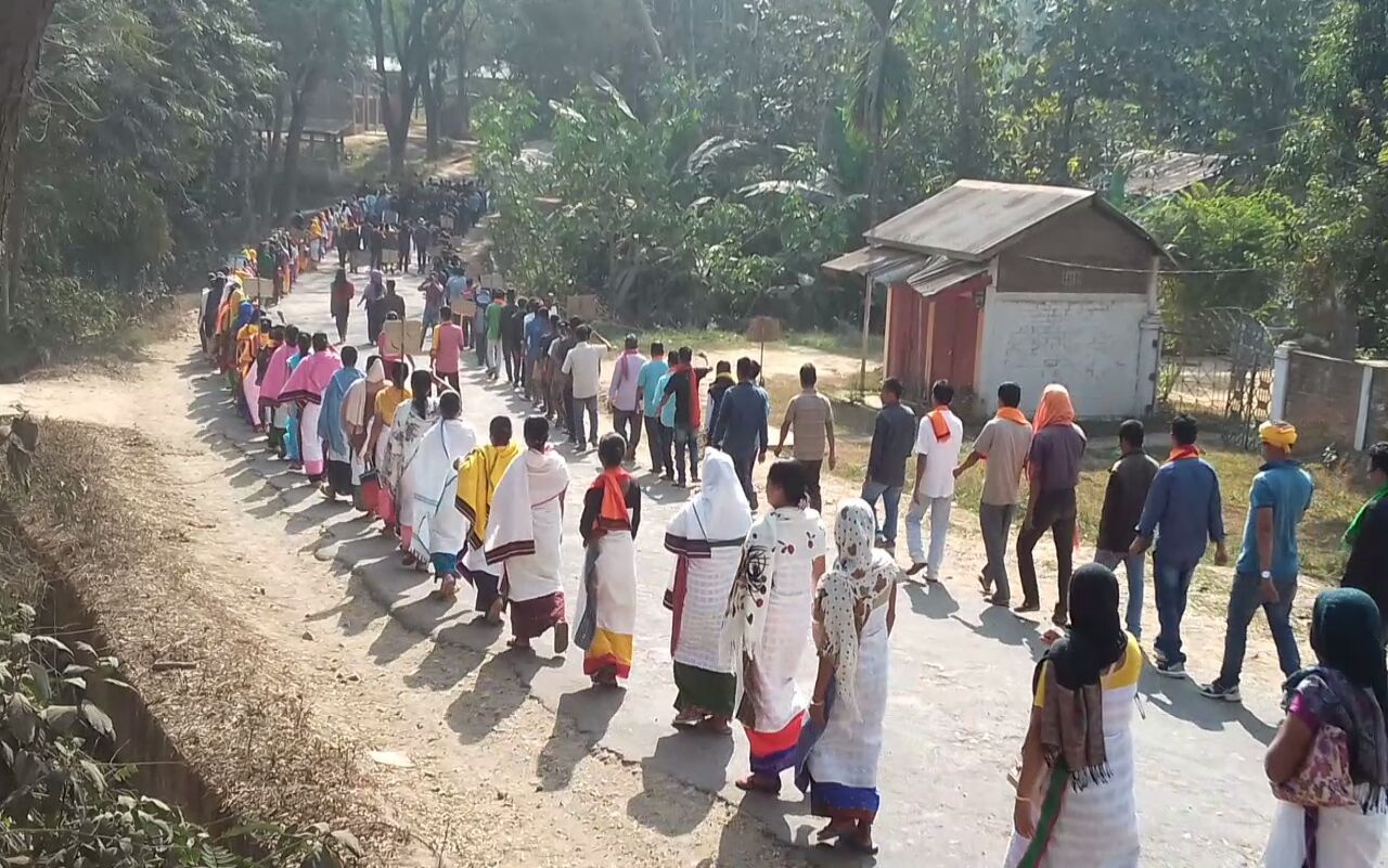খেৰণিঃ ইনচান কে ল্যিয়ে কানুন হ্যোতাহে৷ আদালত হ্যোতা হে৷ লাঠি, পানী, গেছ কুছ ন্যেহি ইস্তেমাল ক্যায়া? চিধা গুলী চ্যালায়ে৷ এতিয়া ডিমাচা জনগোষ্ঠীৰ পুৰুষ-মহিলাৰ মুখে মুখে এই মন্তব্য৷ শনিবাৰে পুনৰ ৰাজ পথলৈ ওলাই আহি ডিমাচা জনগোষ্ঠীৰ লোকে প্ৰতিবাদ সাব্যস্ত কৰে৷ জিলাখনৰ দিয়ুংব্ৰাৰ ৰাজপথত হাজাৰ হাজাৰ লোক ওলাই আহি উত্তাল পৰিৱেশৰ সৃষ্টি কৰে। পৰম্পৰাগত ডিমাছা জাতীয় উৎসৱ-আনন্দ সকলো এৰি ৰাজপথলৈ ওলাই আহি মাইবং কাণ্ডত নিহত যুৱকৰ ন্যায় বিচাৰে।