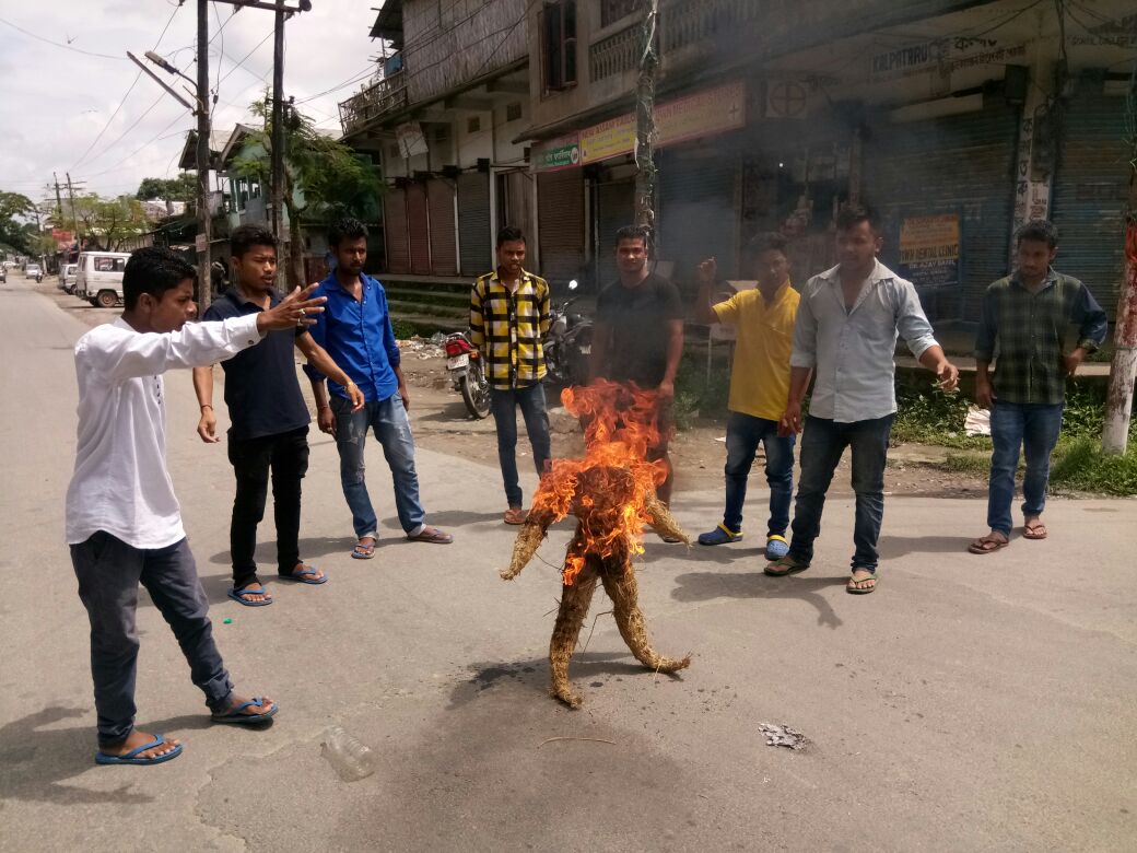 শিমলুগুৰিঃ দীনদয়াল উপাধ্যায় নামত মহাবিদ্যালয়ৰ স্থাপনৰ বিৰোধিতা কৰি আৰু কৃষক-ছাত্ৰ মুক্তি সংগ্ৰাম সমিতিৰ নেতাৰ মুক্তি দাবীত শিমলুগুৰি মছজিদ তিনিআলিত হিমন্ত বিশ্ব শৰ্মাৰ পুত্তলিকা দাহ কৰে।