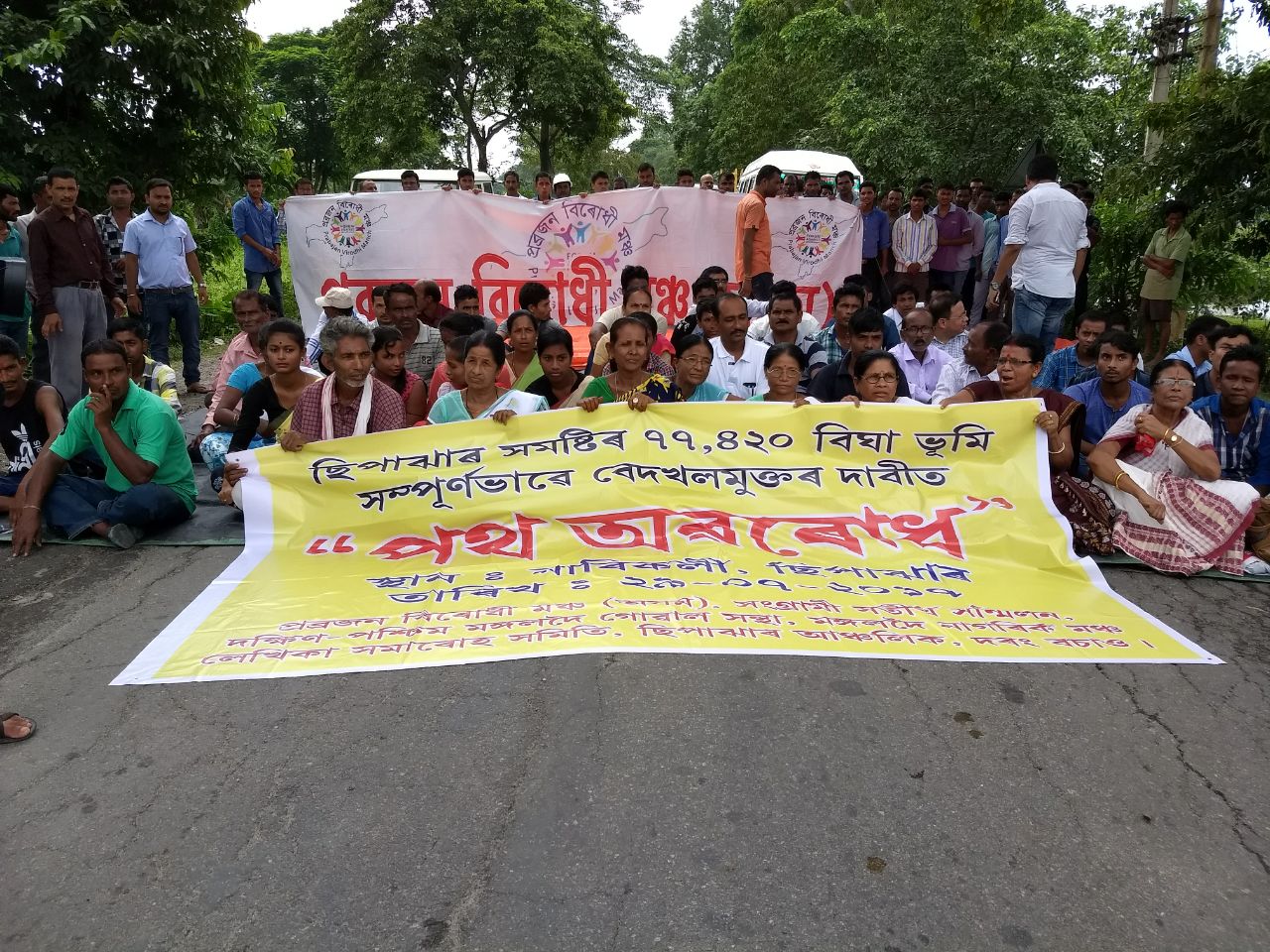 ছিপাঝাৰ বিধান সভা সমষ্টিৰ অন্তৰ্গত দক্ষিণ কুৰুৱাৰ পৰা ধলপুৰলৈ সমগ্ৰ চৰ অঞ্চলৰ ৭৭হাজাৰ ৪২০ বিঘা মাটি সন্দেহযুক্ত বাংলাদেশী লোকৰ পৰা বেদখল মুক্ত কৰাৰ দাবীত এইদৰে প্ৰতিবাদ সাব্যস্ত কৰে সংগঠনটোৱে।